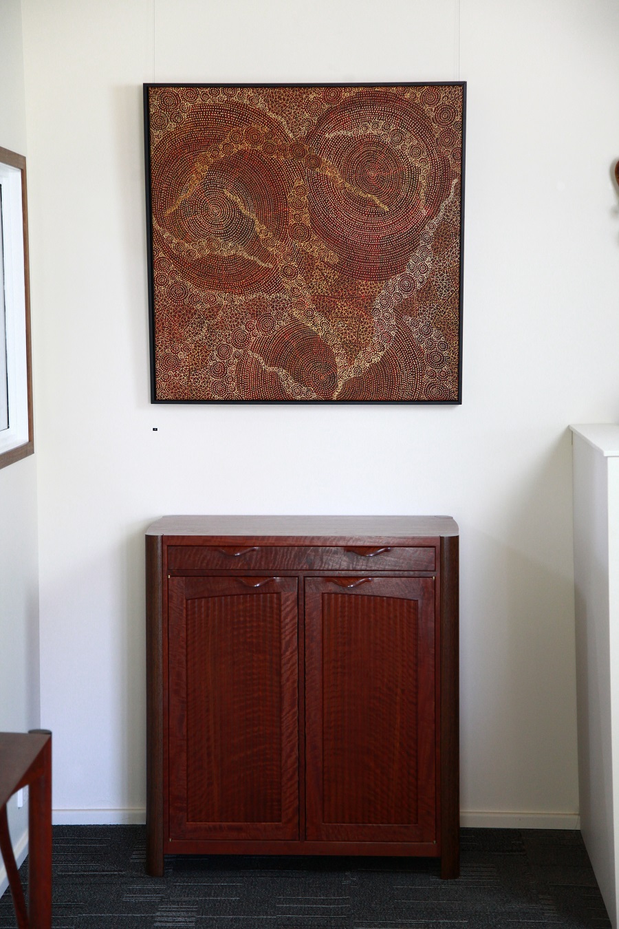 River red gum is a notoriously cranky timber to use. It moves, cracks and generally misbehaves. Many makers consider it to be little better than firewood. Over the years, we have become something of experts at the use of red gum in fine furniture. The fluted panels on the doors of Riverstones II was our way of showing the world just how beautiful red gum could be.